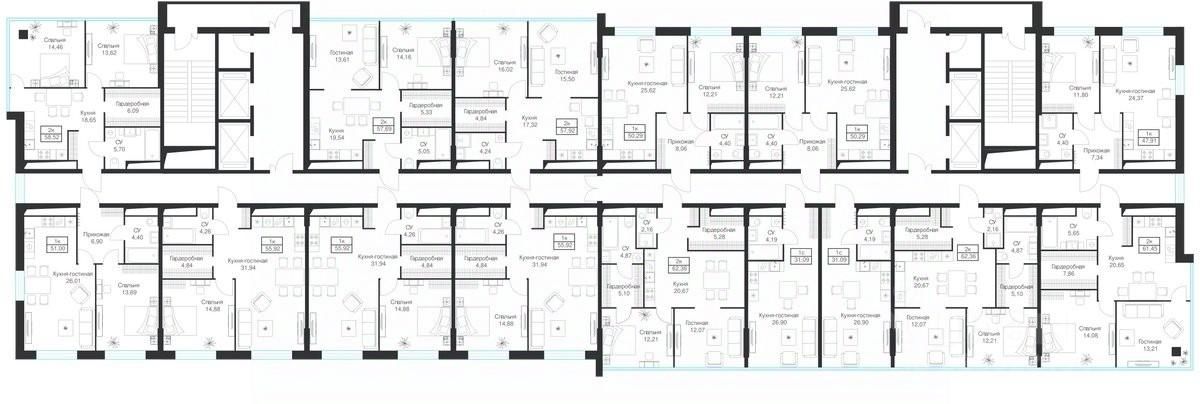 Продаются 1-комнатные апартаменты 51 кв.м. на 20-м этаже 20-этажного комплекса.