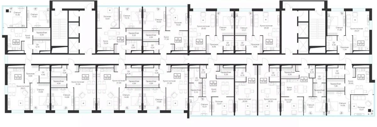 Продаются 1-комнатные апартаменты 51 кв.м. на 20-м этаже 20-этажного комплекса.