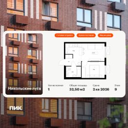 Продаётся 1-комн. квартира площадью 32,5 кв.м на 9 этаже 11 этажного дома (Корпус 4, Секция 4) проекта ПИК Никольские луга. Светлый просторный подъезд на уровне земли, функциональная планировка, большие окна, c отделкой.