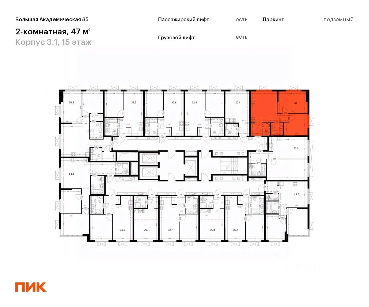 Продаётся 2-комн. квартира площадью 47 кв.м на 15 этаже 19 этажного дома (Корпус 3.1, Секция 1) проекта ПИК Большая Академическая 85. Светлый просторный подъезд на уровне земли, функциональная планировка, большие окна, c отделкой.