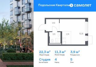 Строим кварталы для жизни с заботой о будущем. Предлагается квартира студия комфорт-класса 22,28 кв.м в корпусе 4 на 5 этаже, в ЖК "Подольские Кварталы"