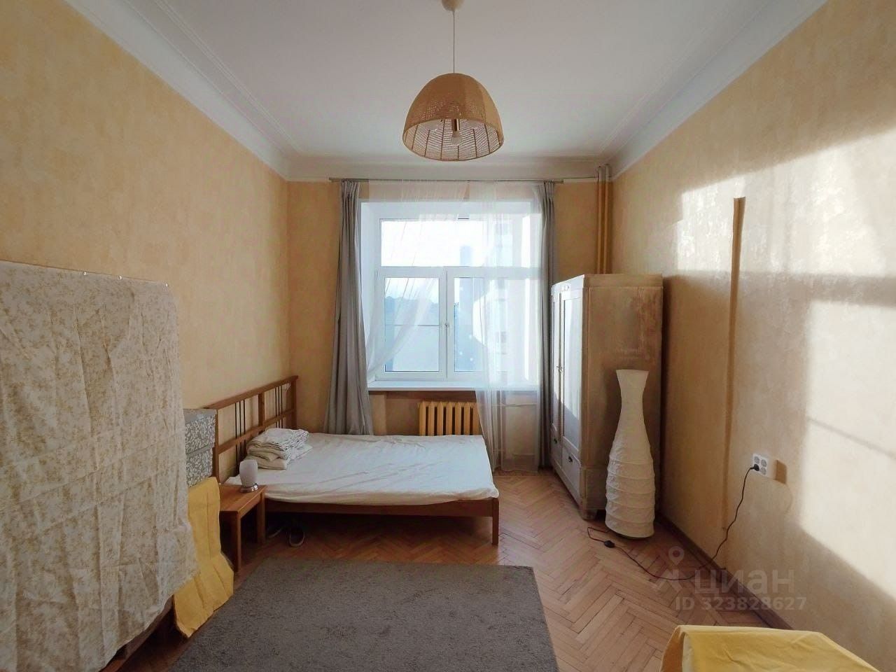 В квартире четыре изолированных комнаты, два раздельных санузла, две кухни, два балкона. Три окна выходят на набережную реки, три в тихий двор. Высота потолков 3,2 м. Частично выполнен ремонт.