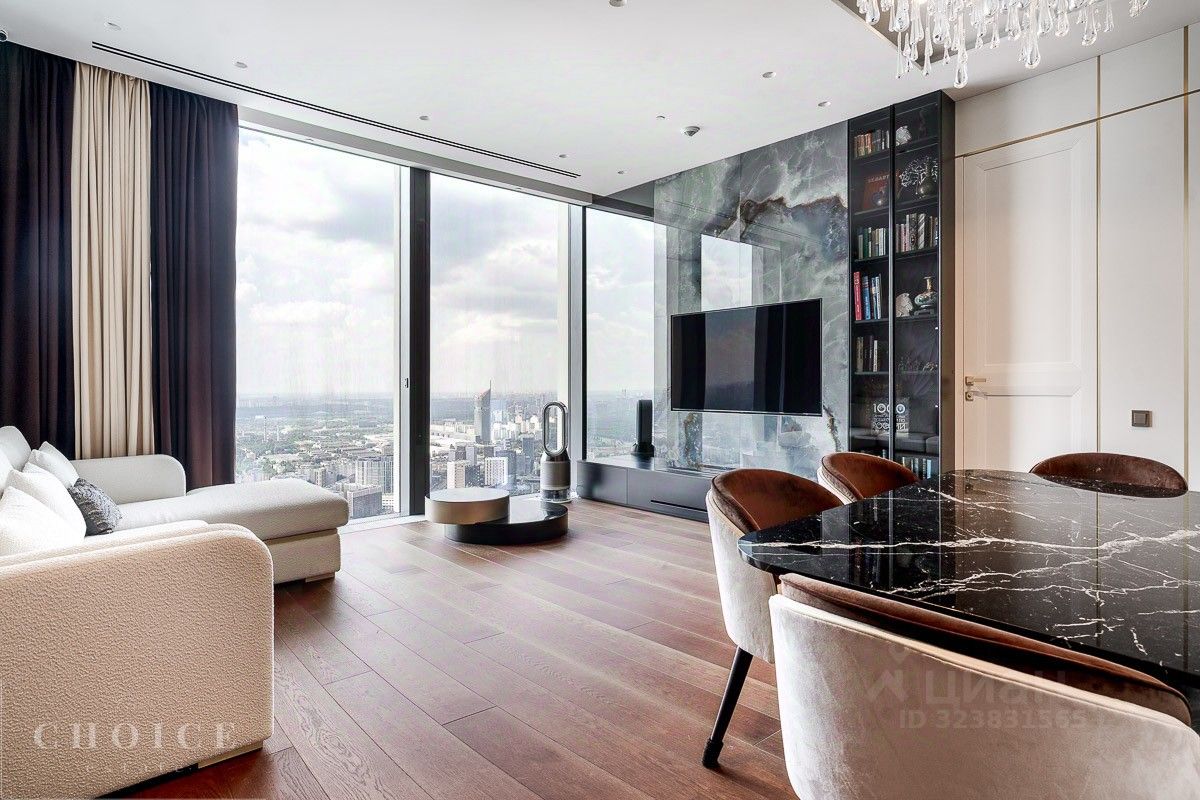 Трехкомнатные апартаменты в в жилом комплексе Neva Towers. Выполнена дизайнерская отделка в современном стиле с использованием премиальных материалов. Из панорамных окон открывается великолепный вид на город. В стоимость входит кладовая комната на этаже (7,6 кв.м.) Башни NEVA TOWERS расположены на территории международного делового квартала Москва-Сити. На крыше расположился частный парк с открытым бассейном. В NEVA TOWERS собственная фитнес-студия, SPA, хаммам, бильярдная, сигарный зал, переговорная для приема гостей и партнеров, виртуальный гольф, музыкальный салон и кинозал. Предусмотрен консьерж-сервис.