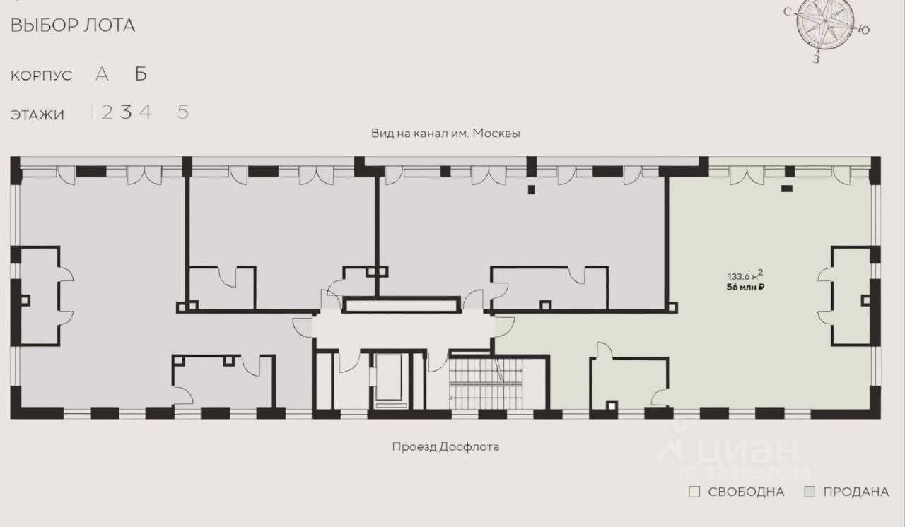 Предлагается квартира в новостройке бизнес-класса. Или на сайте . Пятиэтажное здание, на каждом этаже расположено четыре квартиры. Общая площадь предлагаемой квартиры составляет 133.6 квадратных метра. Квартира расположена на 3 этаже и предлагается со свободной планировкой и без отделки. Высота потолков в квартире 4 метра, высота дверных проемов составляет 2,4 метра. В здании установлен скоростной лифт KONE, кабина которого также имеет высоту 2,4 метра. Квартира включает в себя четыре санузла, высокие окна (3 метра), выходящие на три стороны. Установлены алюминиевые рамы ALUTECH и стеклопакеты Guardian.