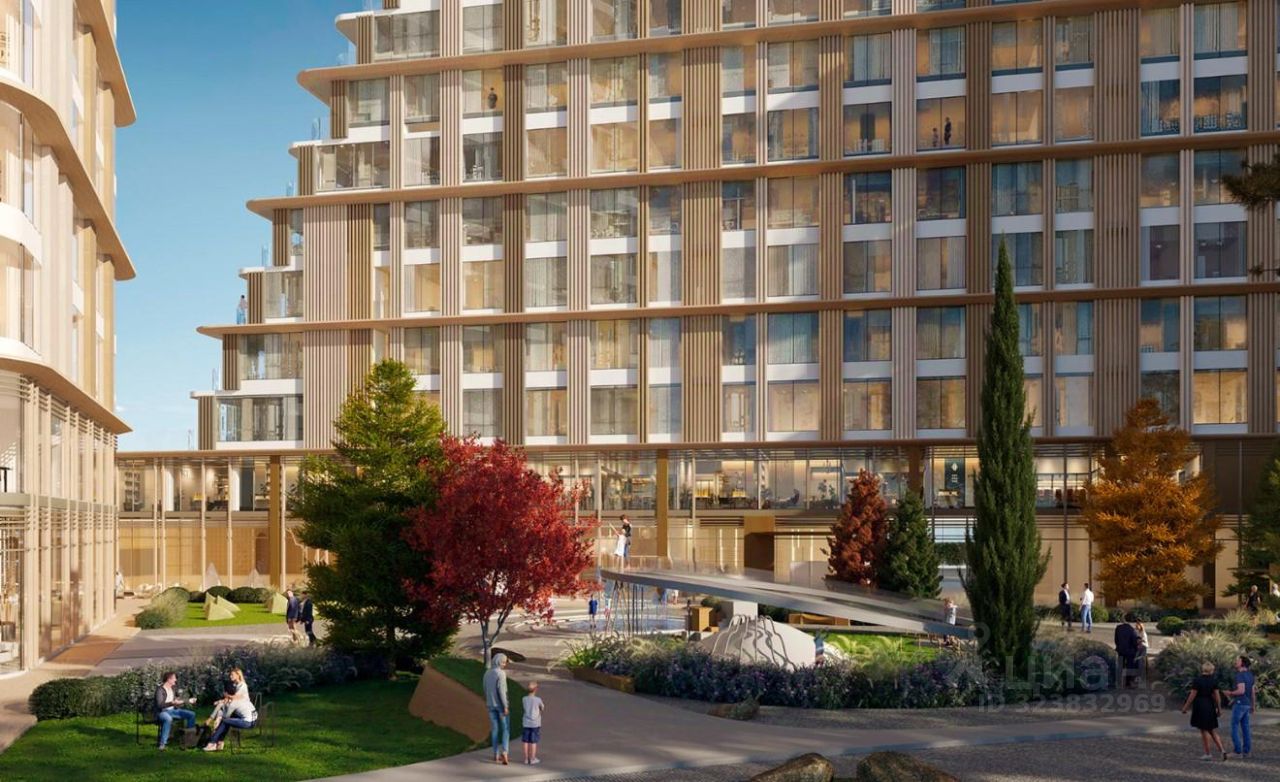 В комплексе есть приватный благоустроенный двор-патио с ландшафтным дизайном, эксплуатируемая кровля с большой террасой, где можно позаниматься йогой по утрам или выпить чашку кофе. В проекте также предусмотрен детский развивающий центр, коммерческие помещения на 1-2 этажах, подземный паркинг.
