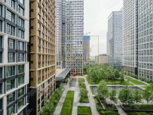 • Общее парковое пространство квартала -5,5 га, 3 из них отведено для жильцов с фонтанами и детскими площадками.