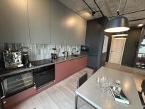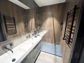 Дорогие отделочные материалы, натуральное дерево, металл, керамика, камень. Продуманная инженерия, индивидуальная приточная вентиляция с фильтрацией воздуха. Большая площадь остекления, квартира очень светлая. Высота потолков 3 метра.
