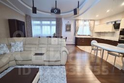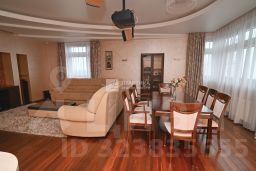 Уникальность объекта во многом создается стильным остеклением, выполненным из двухкамерных стеклопакетов в деревянных рамах и переплётах из ценных пород дерева. Для удобства все (!) створки открываются в разных плоскостях. Квартира укомплектована всем необходимым для комфортного проживания, а особое внимание уделено разнообразной интерьерной подсветке помещений. Мебель в гостиной Mobel&zeit, в кабинете BoConcept, полы: темный паркет ормозия, светлый дуб. Кухонная техника Miele, сантехника Lauren, Duravit.