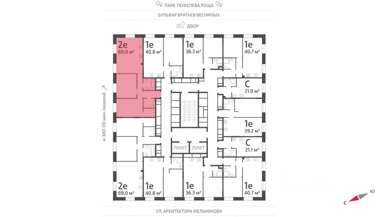 Продаётся 2-комнатная квартира в доме 18 (ЗИЛАРТ ГРАНД) ЖК "ЗИЛАРТ" общей площадью 69 кв. метров на 11 этаже.