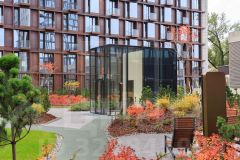 Высокие потолки (3 м) и панорамное остекление наполняют пространство воздухом и естественным дневным светом. Из окон открываются виды на благоустроенные ландшафтные дворы.
