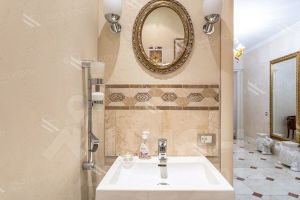 Интерьер выполнен в классическом стиле с элементами прованса, в теплых бежево-золотых тонах, придающими изысканность и уют.