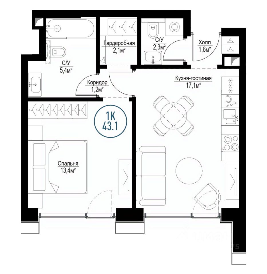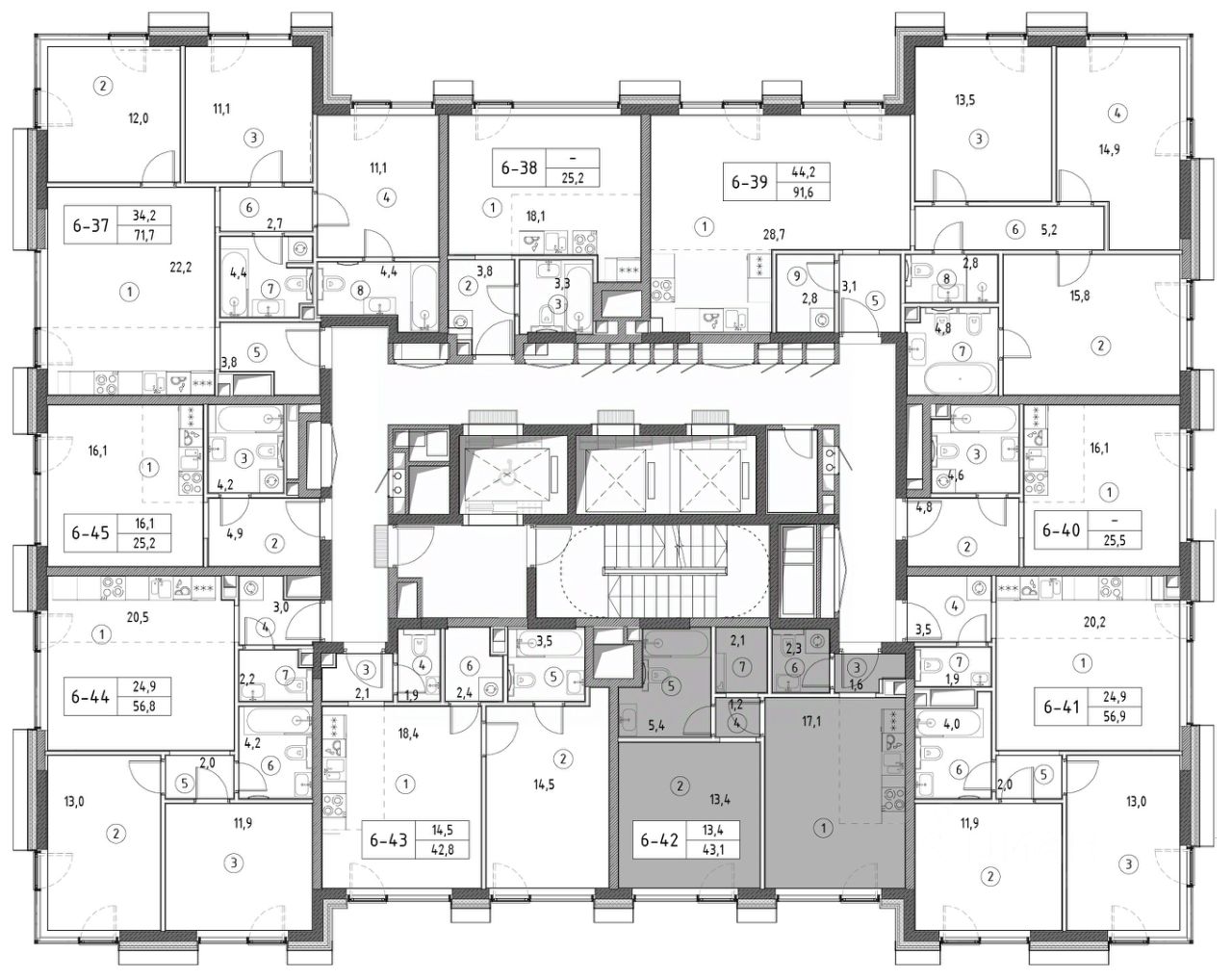 Продаётся 1-комнатная квартира общей площадью 42.30 м², на 6 этаже.