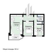 Квартира расположена на 5 этаже 14-этажного панельного дома 1993 года постройки. Общая площадь составляет 50,6 кв. м, из которых 30,3 кв. м — жилая площадь, 8,3 кв. м — кухня. Высота потолков — 2,65 м, что создаёт ощущение простора и свободы. Комнаты изолированы, площадь комнат — 18,9 и 11,4 кв. м, окна выходят на улицу.