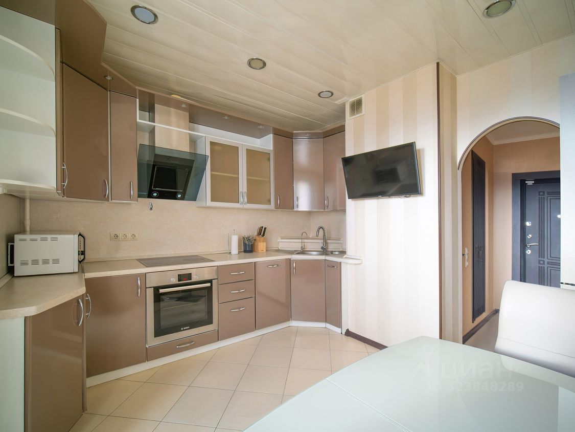 Квартира расположена на 20 этаже 22 этажного панельного дома. Квартира полностью укомплектована мебелью и бытовой техникой. Кухонный гарнитур под единой столешницей со встроенной бытовой техникой - духовой шкаф, варочная панель, посудомоечная машина. В комнате комфортный двуспальный кожаный диван и большой шкаф для хранения вещей, а также комоды для хранения, телевизор и кондиционер. Санузел раздельный. Квартира в достойном состоянии.