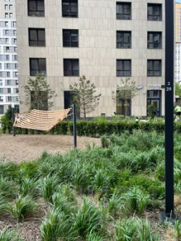 Территория комплекса огорожена, во дворе нет машин, а сама территория находится под охраной. Высота потолков — 3 метра.