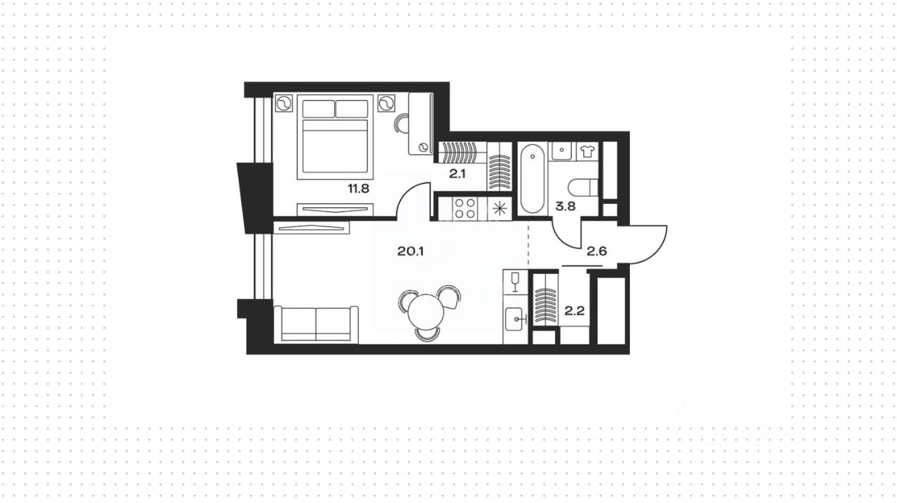 Квартира с одной спальней общей площадью 43 м² в квартале бизнес-класса SOUL. Квартира с предчистовой отделкой white box расположена на четвертом этаже во втором корпусе, в третьей секции. Планировка: кухня-гостиная, спальня со своей гардеробной, ванная комната и прихожая с гардеробной.