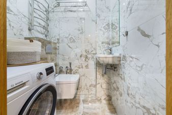 Два санузла — это стандарт современных квартир. Обратите внимание на фото квартиры. Все двери квартиры с увеличенным полотном высотой 2,1 метра.
