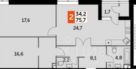 Площадь - 75,7 кв.м.