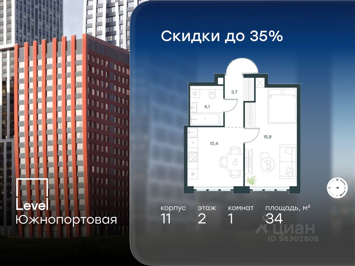 В северной части района Печатники продается 1-комнатная квартира площадью 34.00 кв.м без отделки. Квартира расположена на 2 этаже 16-этажного корпуса 11 в жилом комплексе комфорт-класса Level Южнопортовая (компания Level Group/Левел групп).