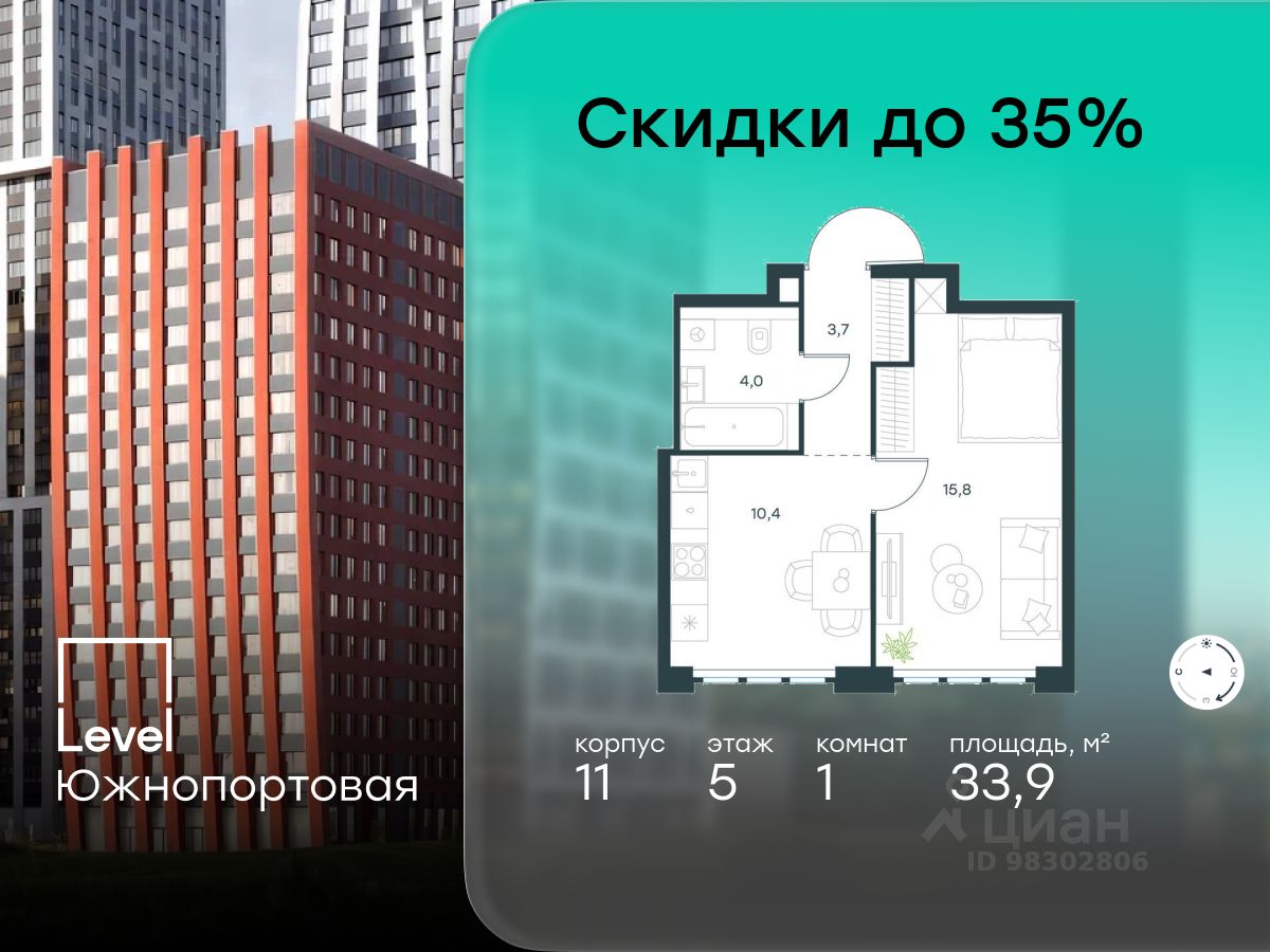 В северной части района Печатники продается 1-комнатная квартира площадью 33.90 кв.м без отделки. Квартира расположена на 5 этаже 16-этажного корпуса 11 в жилом комплексе комфорт-класса Level Южнопортовая (компания Level Group/Левел групп).