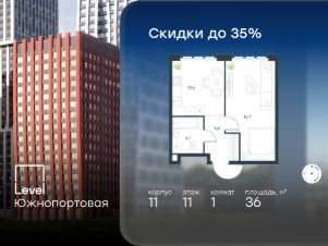 В северной части района Печатники продается 1-комнатная квартира площадью 36.00 кв.м без отделки. Квартира расположена на 11 этаже 16-этажного корпуса 11 в жилом комплексе комфорт-класса Level Южнопортовая (компания Level Group/Левел групп).