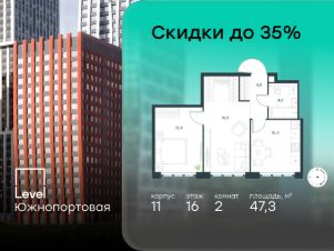 В северной части района Печатники продается 2-комнатная квартира площадью 47.30 кв.м без отделки. Квартира расположена на 16 этаже 16-этажного корпуса 11 в жилом комплексе комфорт-класса Level Южнопортовая (компания Level Group/Левел групп).