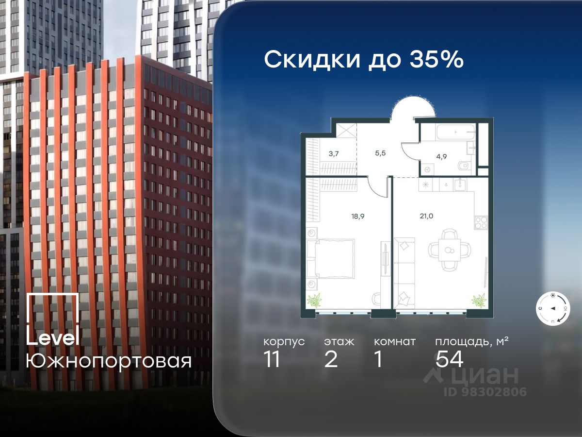 В северной части района Печатники продается 1-комнатная квартира площадью 54.00 кв.м без отделки. Квартира расположена на 2 этаже 16-этажного корпуса 11 в жилом комплексе комфорт-класса Level Южнопортовая (компания Level Group/Левел групп).