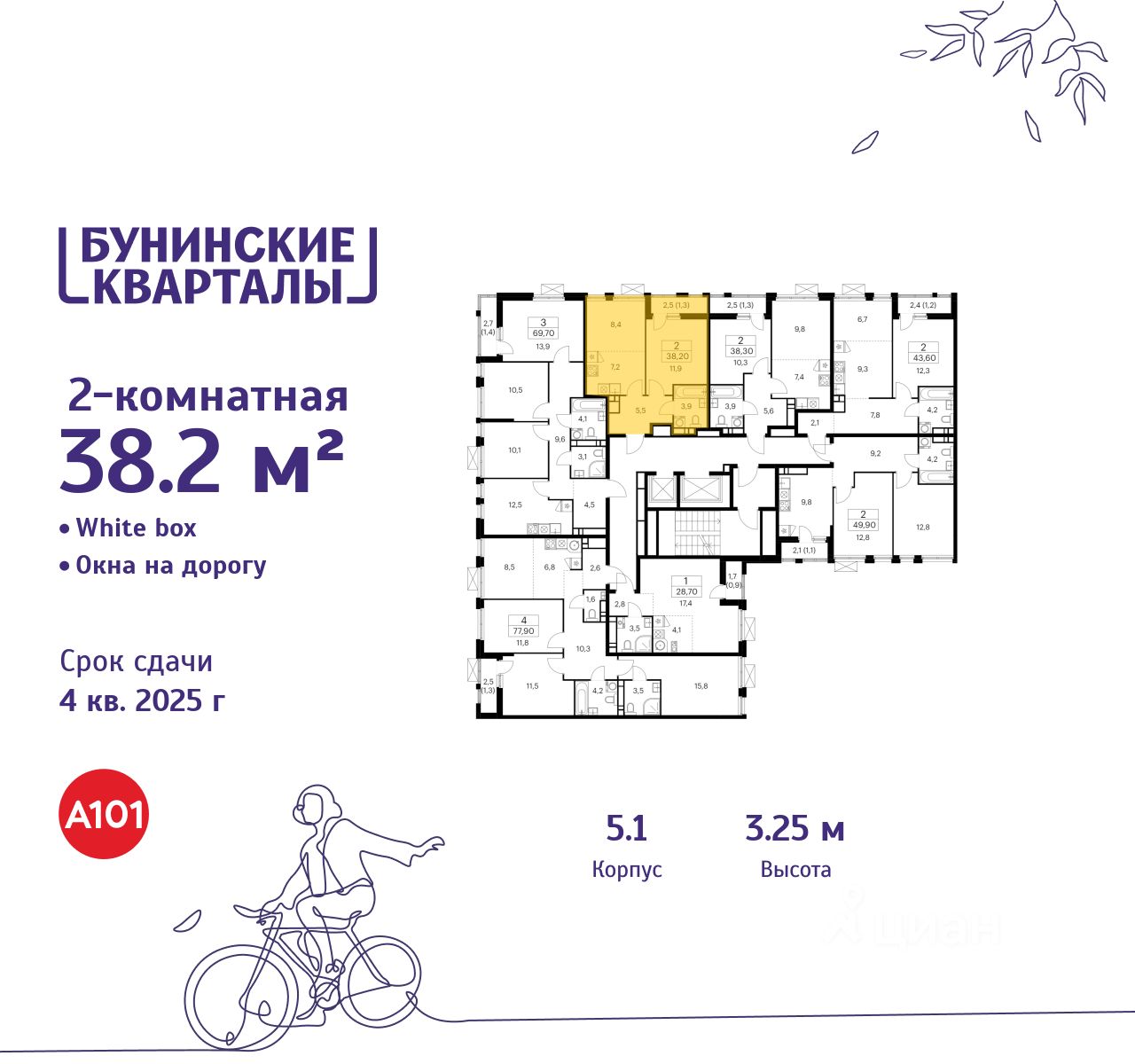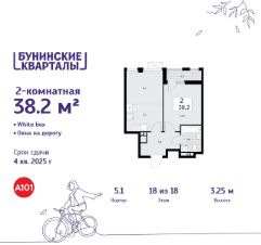 Продается двухкомнатная квартира 241 в новостройке ЖК "Бунинские кварталы" по адресу Москва, ТиНАО, Новомосковский АО, Сосенское С/П, жилой комплекс Бунинские Кварталы, 5.1, район Коммунарка, Новомосковский административный округ, Москва. Общая площадь квартиры - 38.20 кв. м., этаж 18 из 18, секция 3. Тип проекта, по которому построен дом - монолит, компания-застройщик - ООО "А101". Стоимость квартиры - 16144848 Р. Срок сдачи - 1 квартал 2026.