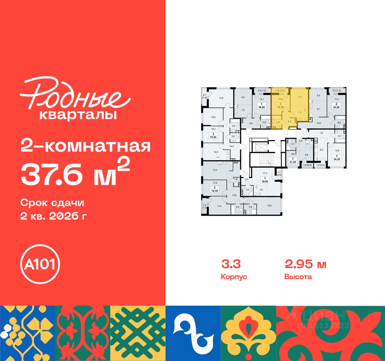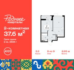 Продается двухкомнатная квартира 420 в новостройке Жилой район "Родные кварталы" по адресу Москва, ТиНАО, Новомосковский АО, Марушкинское С/П, жилой комплекс Родные Кварталы, 3.3, район Внуково, Новомосковский административный округ, Москва. Общая площадь квартиры - 37.60 кв. м., этаж 8 из 9, секция 9. Тип проекта, по которому построен дом - монолит, компания-застройщик - ООО "А101". Стоимость квартиры - 12085392 Р. Срок сдачи - 2 квартал 2026.