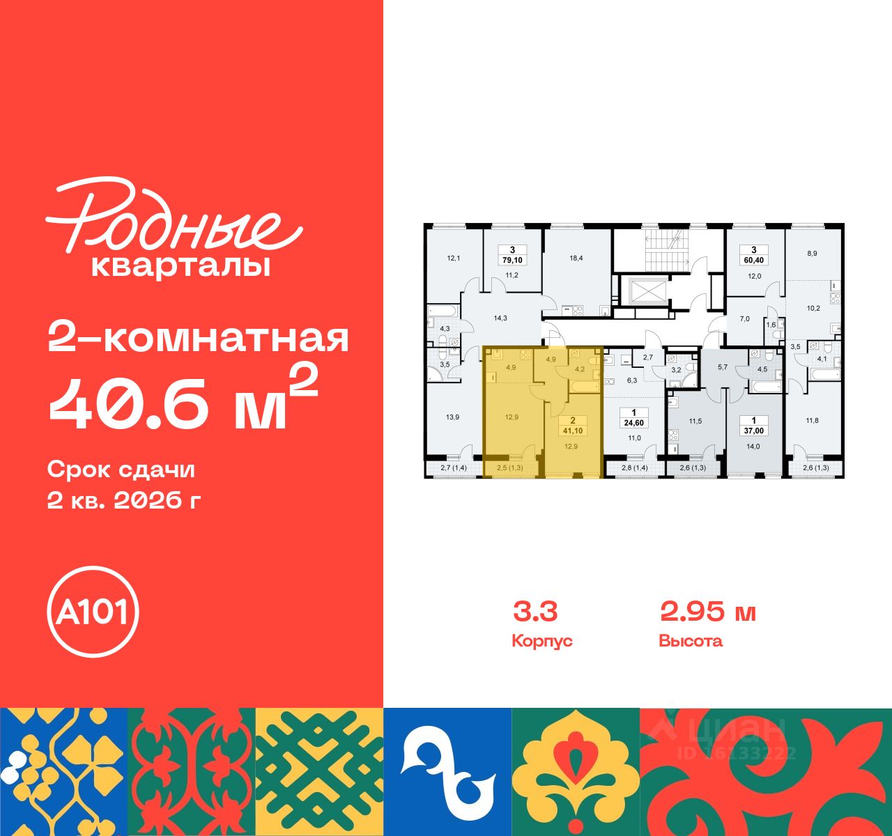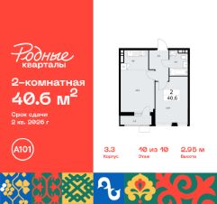 Продается двухкомнатная квартира 368 в новостройке Жилой район "Родные кварталы" по адресу Москва, ТиНАО, Новомосковский АО, Марушкинское С/П, жилой комплекс Родные Кварталы, 3.3, район Внуково, Новомосковский административный округ, Москва. Общая площадь квартиры - 40.60 кв. м., этаж 10 из 10, секция 8. Тип проекта, по которому построен дом - монолит, компания-застройщик - ООО "А101". Стоимость квартиры - 12563264 Р. Срок сдачи - 2 квартал 2026.