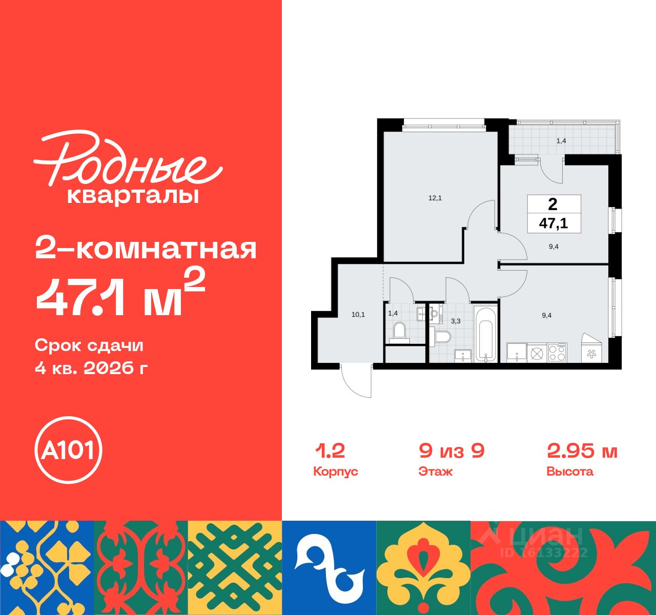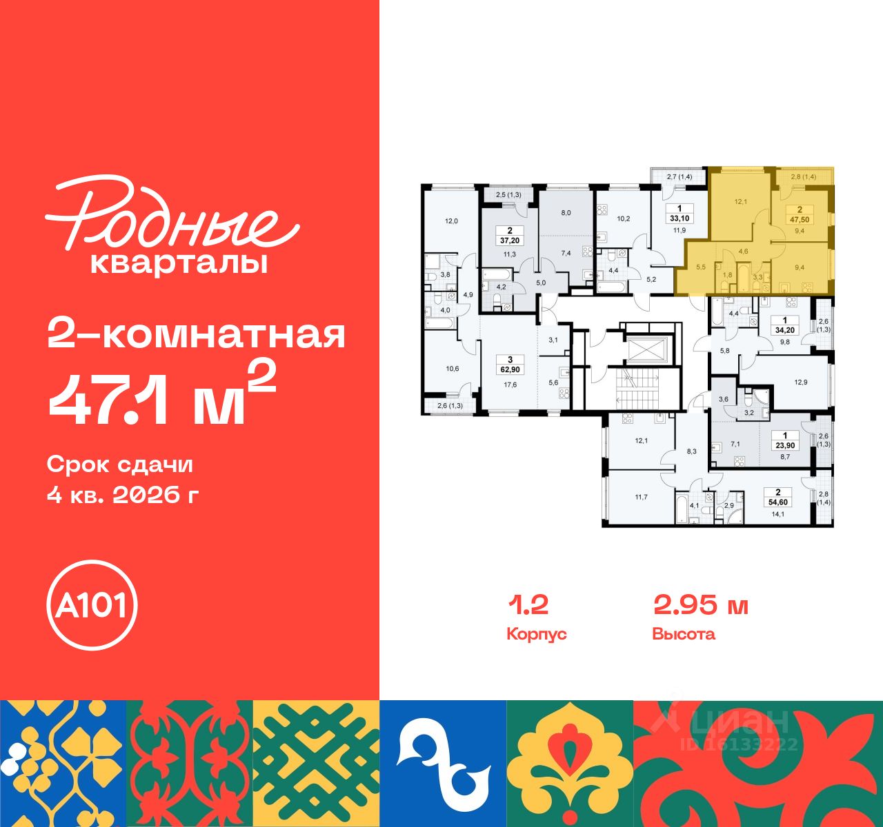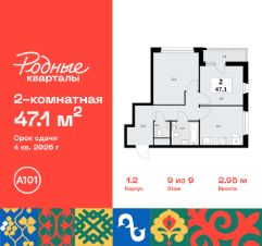 Продается двухкомнатная квартира 344 в новостройке Жилой район "Родные кварталы" по адресу Москва, ТиНАО, Новомосковский АО, Марушкинское С/П, жилой комплекс Родные Кварталы, 1.2, район Внуково, Новомосковский административный округ, Москва. Общая площадь квартиры - 47.10 кв. м., этаж 9 из 9, секция 6. Тип проекта, по которому построен дом - монолит, компания-застройщик - ООО "А101". Стоимость квартиры - 15017835 Р. Срок сдачи - 4 квартал 2026.