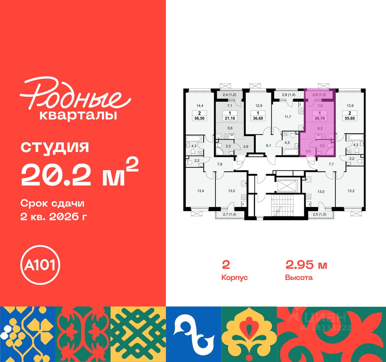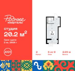 Продается студия 264 в новостройке Жилой район "Родные кварталы" по адресу Москва, ТиНАО, Новомосковский АО, Марушкинское С/П, жилой комплекс Родные Кварталы, 2, район Внуково, Новомосковский административный округ, Москва. Общая площадь квартиры - 20.20 кв. м., этаж 6 из 9, секция 6. Тип проекта, по которому построен дом - монолит, компания-застройщик - ООО "А101". Стоимость квартиры - 6826792 Р. Срок сдачи - 2 квартал 2026.