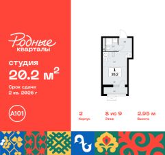 Продается студия 274 в новостройке Жилой район "Родные кварталы" по адресу Москва, ТиНАО, Новомосковский АО, Марушкинское С/П, жилой комплекс Родные Кварталы, 2, район Внуково, Новомосковский административный округ, Москва. Общая площадь квартиры - 20.20 кв. м., этаж 8 из 9, секция 6. Тип проекта, по которому построен дом - монолит, компания-застройщик - ООО "А101". Стоимость квартиры - 7385524 Р. Срок сдачи - 2 квартал 2026.