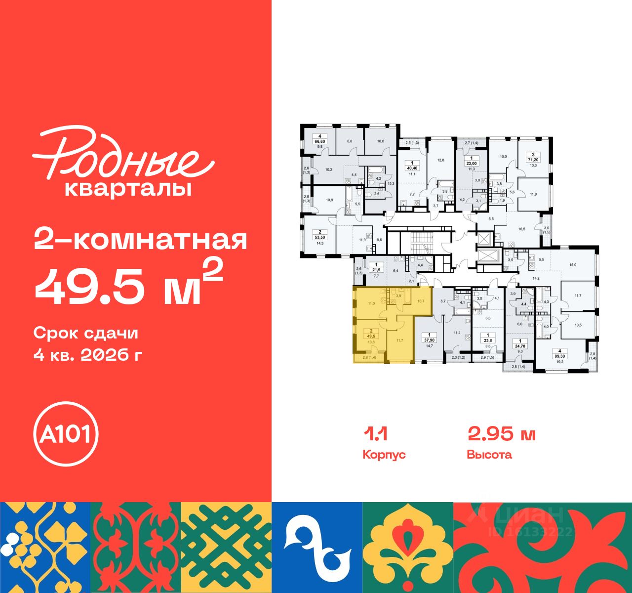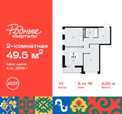 Продается двухкомнатная квартира 71 в новостройке Жилой район "Родные кварталы" по адресу Москва, ТиНАО, Новомосковский АО, Марушкинское С/П, жилой комплекс Родные Кварталы, 1.1, район Внуково, Новомосковский административный округ, Москва. Общая площадь квартиры - 49.50 кв. м., этаж 8 из 10, секция 1. Тип проекта, по которому построен дом - монолит, компания-застройщик - ООО "А101". Стоимость квартиры - 15962760 Р. Срок сдачи - 4 квартал 2026.