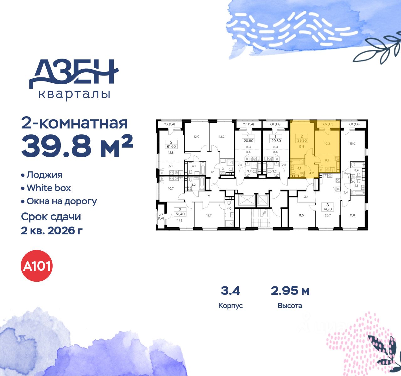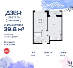 Продается двухкомнатная квартира 781 в новостройке ЖК "Дзен-кварталы" по адресу Москва, ТиНАО, Новомосковский АО, Сосенское С/П, жилой комплекс Дзен-кварталы, 3.4, район Коммунарка, Новомосковский административный округ, Москва. Общая площадь квартиры - 39.80 кв. м., этаж 12 из 14, секция 9. Тип проекта, по которому построен дом - монолит, компания-застройщик - ООО "А101". Стоимость квартиры - 20426156 Р. Срок сдачи - 2 квартал 2026.