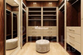 Одна из изюминок квартиры — большая гардеробная, где есть достаточно места для хранения одежды, обуви и аксессуаров. Это решение позволяет поддерживать порядок и организованность в квартире.