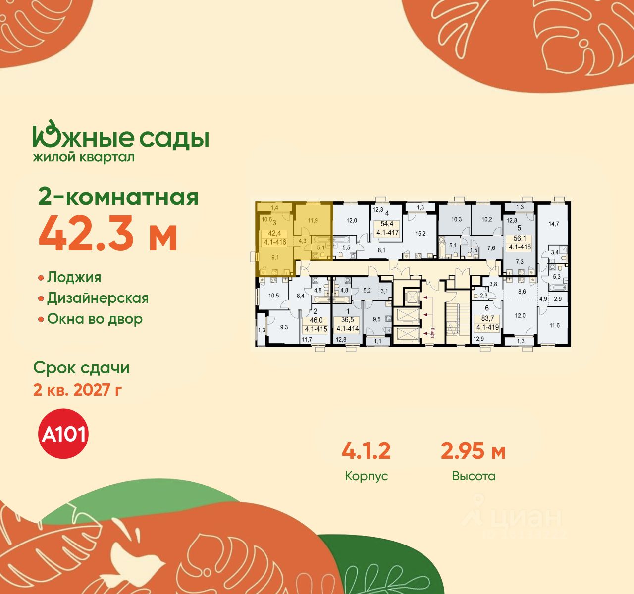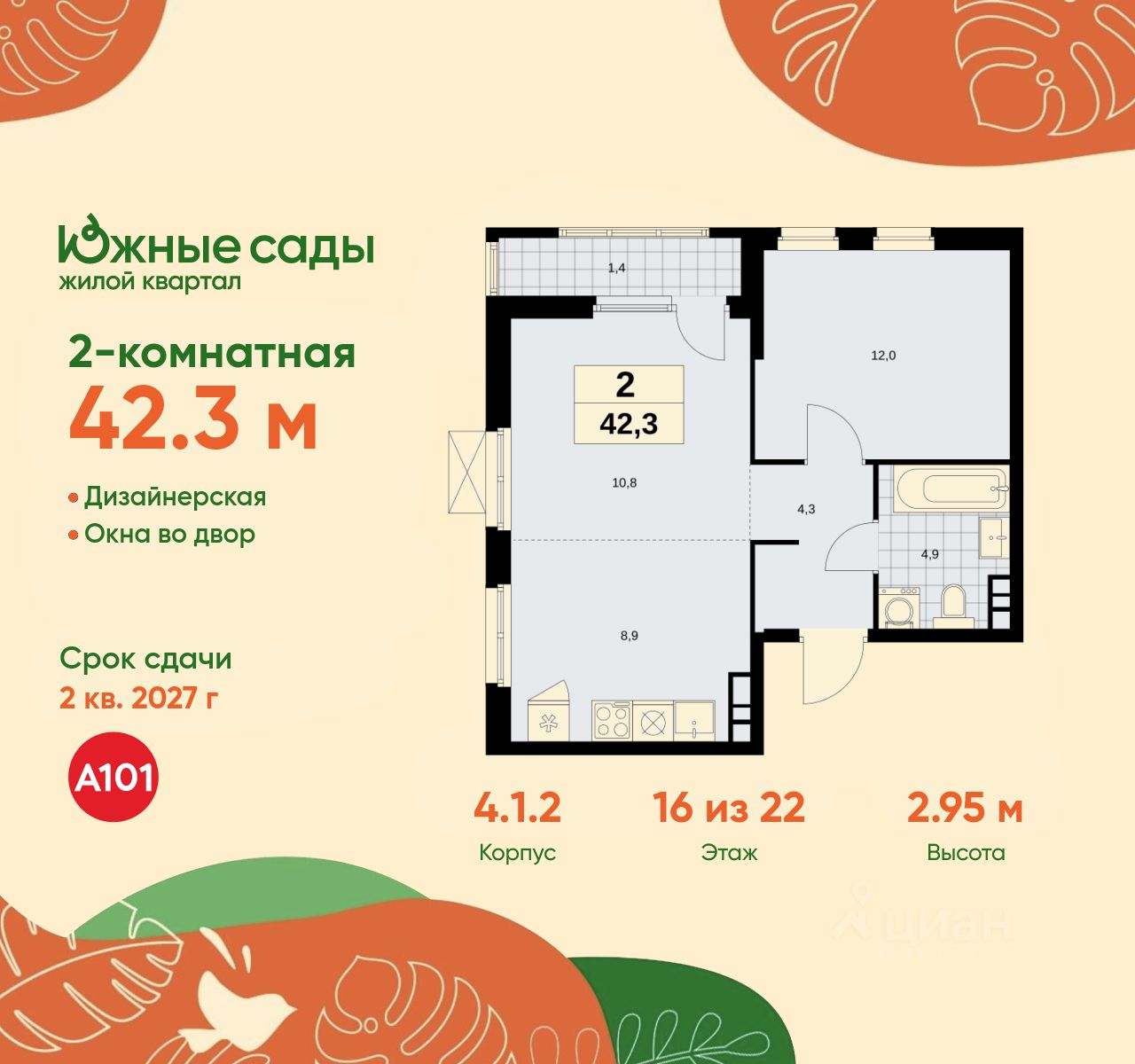 Продается двухкомнатная квартира 500 в новостройке ЖК "Южные Сады" по адресу Москва, ЮЗАО, Южное Бутово, ул. Бартеневская, д. 16. Общая площадь квартиры - 42.30 кв. м., этаж 16 из 22, секция 5. Тип проекта, по которому построен дом - монолит, компания-застройщик - ООО "А101". Стоимость квартиры - 20048931 Р. Срок сдачи - 2 квартал 2027.
