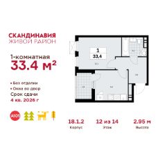 Продается однокомнатная квартира 154 в новостройке Жилой район "Скандинавия" по адресу Москва, ТиНАО, Новомосковский АО, Сосенское С/П, Коммунарка пос., жилой комплекс Скандинавия, 18.1.2, район Коммунарка, Новомосковский административный округ, Москва. Общая площадь квартиры - 33.40 кв. м., этаж 12 из 14, секция 2. Тип проекта, по которому построен дом - монолит, компания-застройщик - ООО "А101". Стоимость квартиры - 12891398 Р. Срок сдачи - 4 квартал 2026.