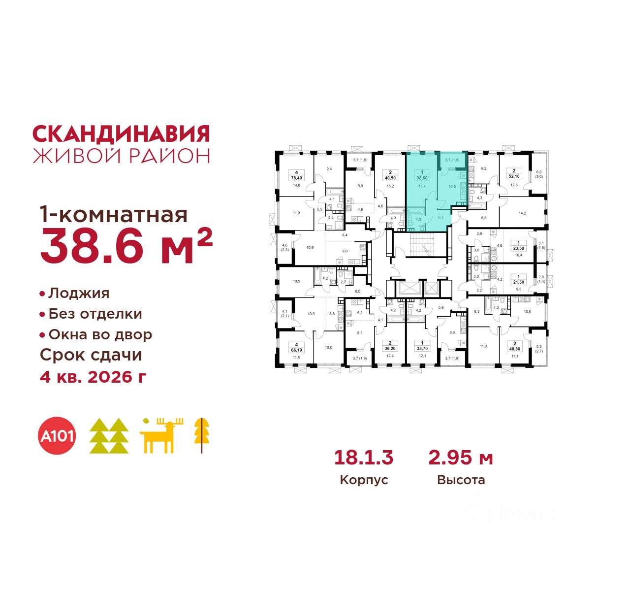 Продается однокомнатная квартира 289 в новостройке Жилой район "Скандинавия" по адресу Москва, ТиНАО, Новомосковский АО, Сосенское С/П, Коммунарка пос., жилой комплекс Скандинавия, 18.1.3, район Коммунарка, Новомосковский административный округ, Москва. Общая площадь квартиры - 38.60 кв. м., этаж 13 из 19, секция 3. Тип проекта, по которому построен дом - монолит, компания-застройщик - ООО "А101". Стоимость квартиры - 14419030 Р. Срок сдачи - 4 квартал 2026.