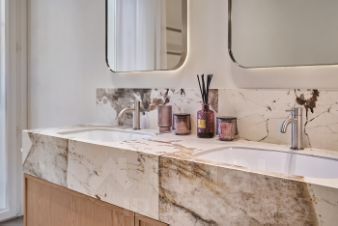 • Дизайнерский ремонт с использованием премиальных материалов: мрамор, шпон, инженерная доска, артскин