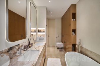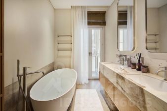 • Просторная ванная комната с окнами в пол и выходом на балкон: отдельностоящая ванна, душ из мрамора, две раковины, итальянская сантехника Gessi