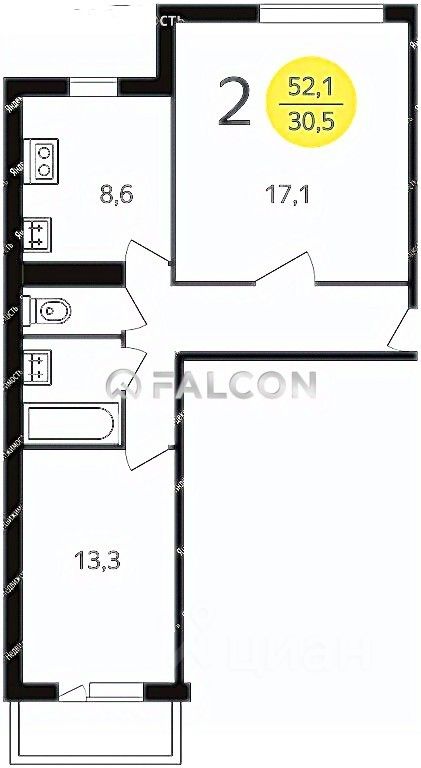 Двухкомнатная квартира общей площадью 52м, расположенная на 5/12 этаже панельного дома 1983 года постройки.