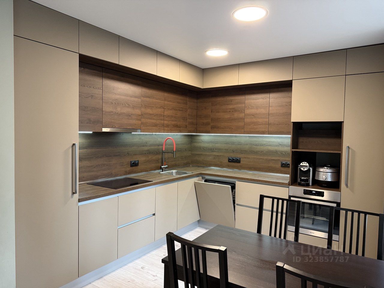 Кухня: фасады Fenix и шкафы Egger, фурнитура Blum, встроенные морозильная и холодильная камеры, посудомоечная машина, варочная панель и духовка Gorenje, глубокая раковина OMOIKIRI.