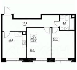 Общая площадь: 60 м²