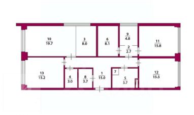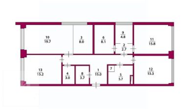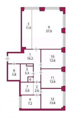 Количество комнат 4. Отлично подойдет для семьи: личные зоны для взрослых и детей, рабочий кабинет или уютная гостиная.