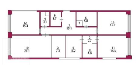 4 изолированные комнаты. Отлично подойдет для семьи: личные зоны для взрослых и детей, рабочий кабинет или уютная гостиная.
