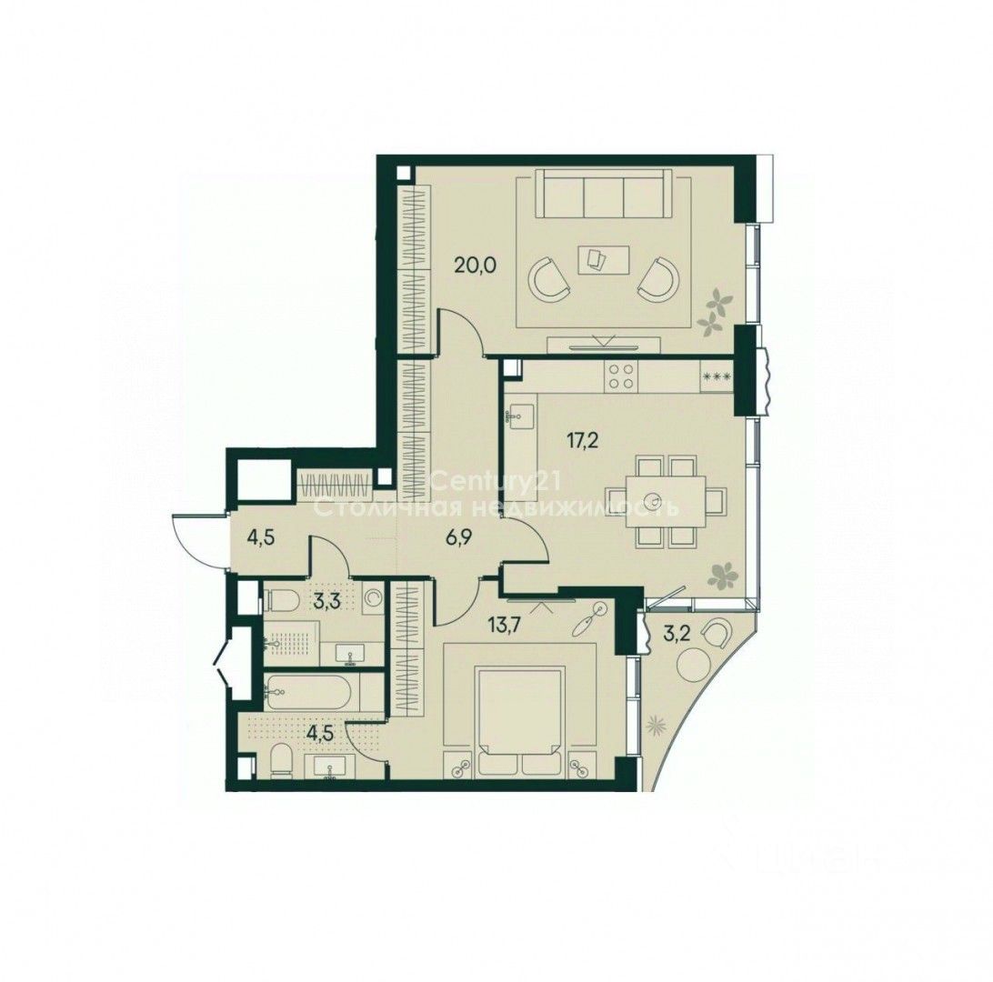 Трехкомнатная панорамная квартира в ЖК "Клубный город на реке Primavera"