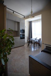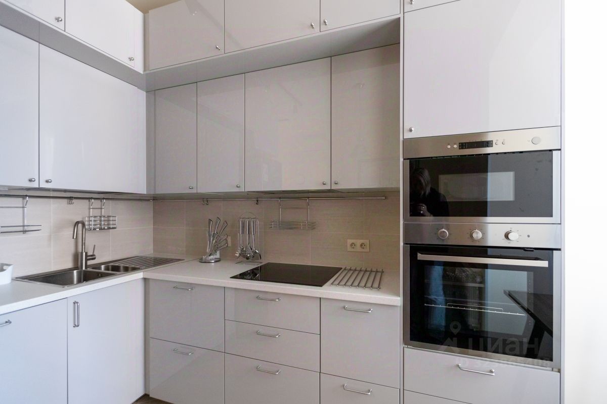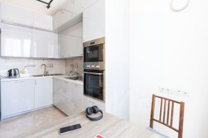 Общая площадь — 42,5 м², из них просторная кухня, оформленная со вкусом: удобный кухонный гарнитур, обеденная зона, раскладной диван и вся необходимая техника — всё остаётся новому владельцу.
