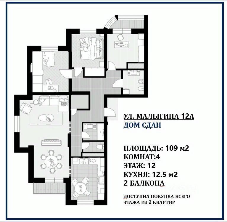 Продаётся эксклюзивная квартира свободной планировки 184 м² в ЖК "Малыгина 12"!