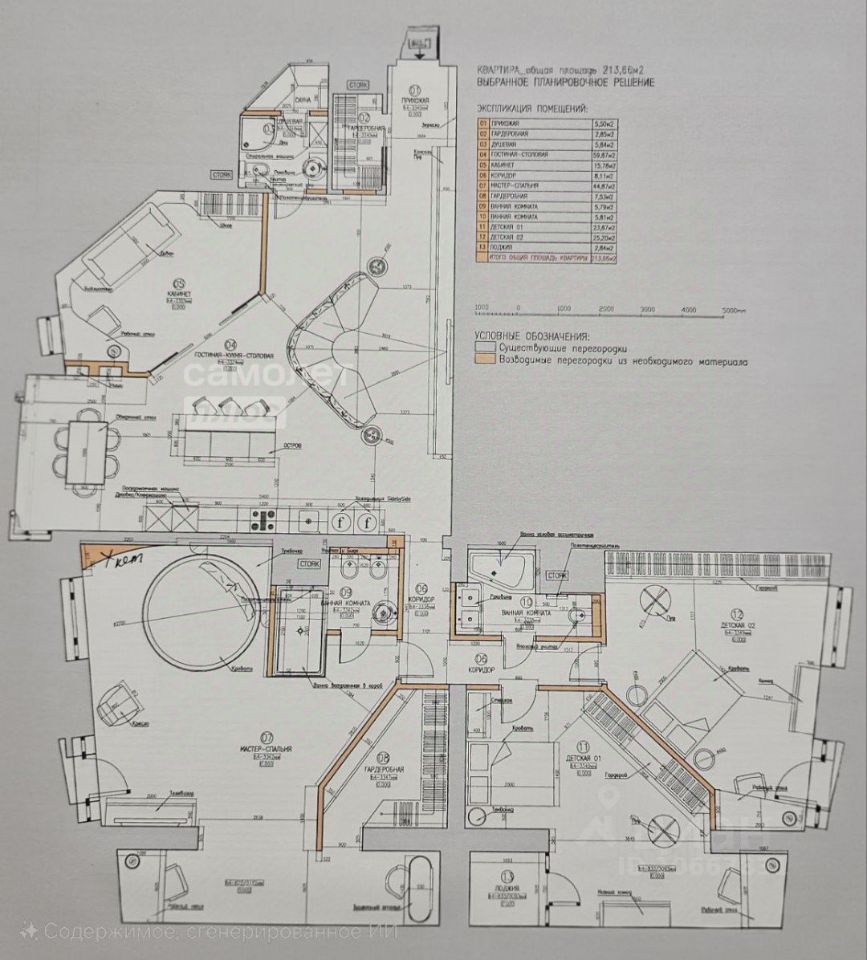 В квартире сделан дизайнерский ремонт, большая мастер-спальня со своей ванной и гардеробной, две детские комнаты с большими гардеробными. Просторная кухня-гостиная с выделенной обеденной зоной 60 м². Панорамные окна в гостиной, высокие потолки 3,10.